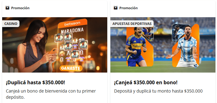 Como ya te hemos contado en este Betsson análisis, podés reclamar un bono de bienvenida en deportes. Duplicá tu depósito hasta un máximo de $350.000.
