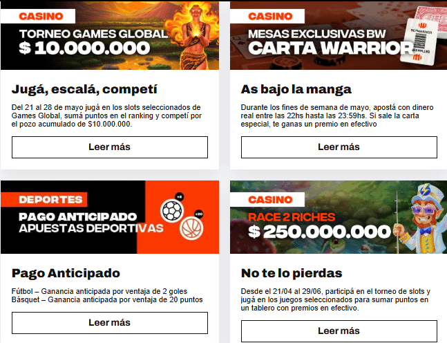 • Revisá las promociones activas cada semana: BetWarrior lanza ofertas recurrentes que pueden complementar o mejorar tu bono inicial.