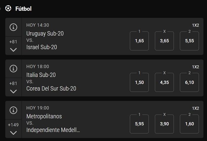 Tus pálpitos deportivos podrás ponerlos en práctica de una forma sencilla en su web. Este operador enfoca algunas de sus promociones a las principales ligas de fútbol del planeta. Pudiendo hacer apuestas 1X2, hándicap, totales, mitad / final o ambos equipos marcan, entre otras.